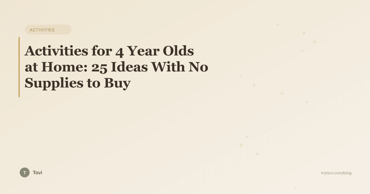 Yes, Tovi is free for up to 2 children. You get 2 daily activity suggestions matched to each child's exact age in months, with step-by-step instructions and developmental context for every activity. There are no hidden costs tied to the activities themselves — every single one uses only household items like wooden spoons, cups, tape, socks, and things from your kitchen drawer. There is nothing extra to buy. The app is designed for parents and caregivers of children ages 2 to 5 and delivers Montessori-inspired, research-backed play ideas straight to your phone each morning. Each activity tells you what to grab, what to do, what your child is building, and what to say while they play. You can add your child's age and the app adjusts automatically as they grow, so the activities evolve with them. Tovi was built on the idea that the best learning happens through real play with real objects and a present caregiver — not through a screen, not through expensive toy kits, and not through a 47-step Pinterest craft. If you have been scrolling activity blogs looking for ideas and wish someone would just tell you what to do this morning, that is exactly what Tovi does.